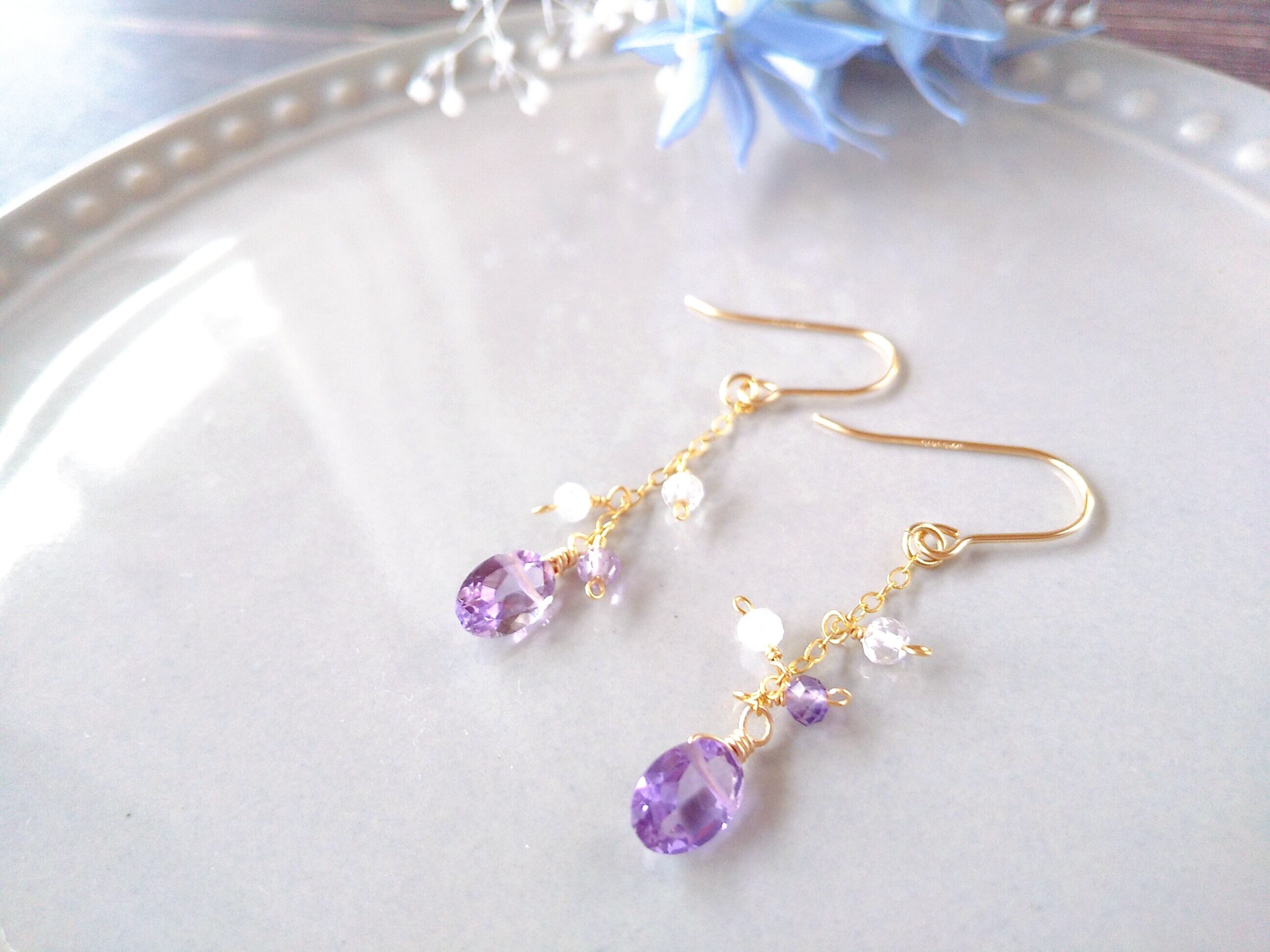真実の愛・癒し/14kgf/~For me~【小さな宝石箱】宝石質ピンクアメジストのピアス