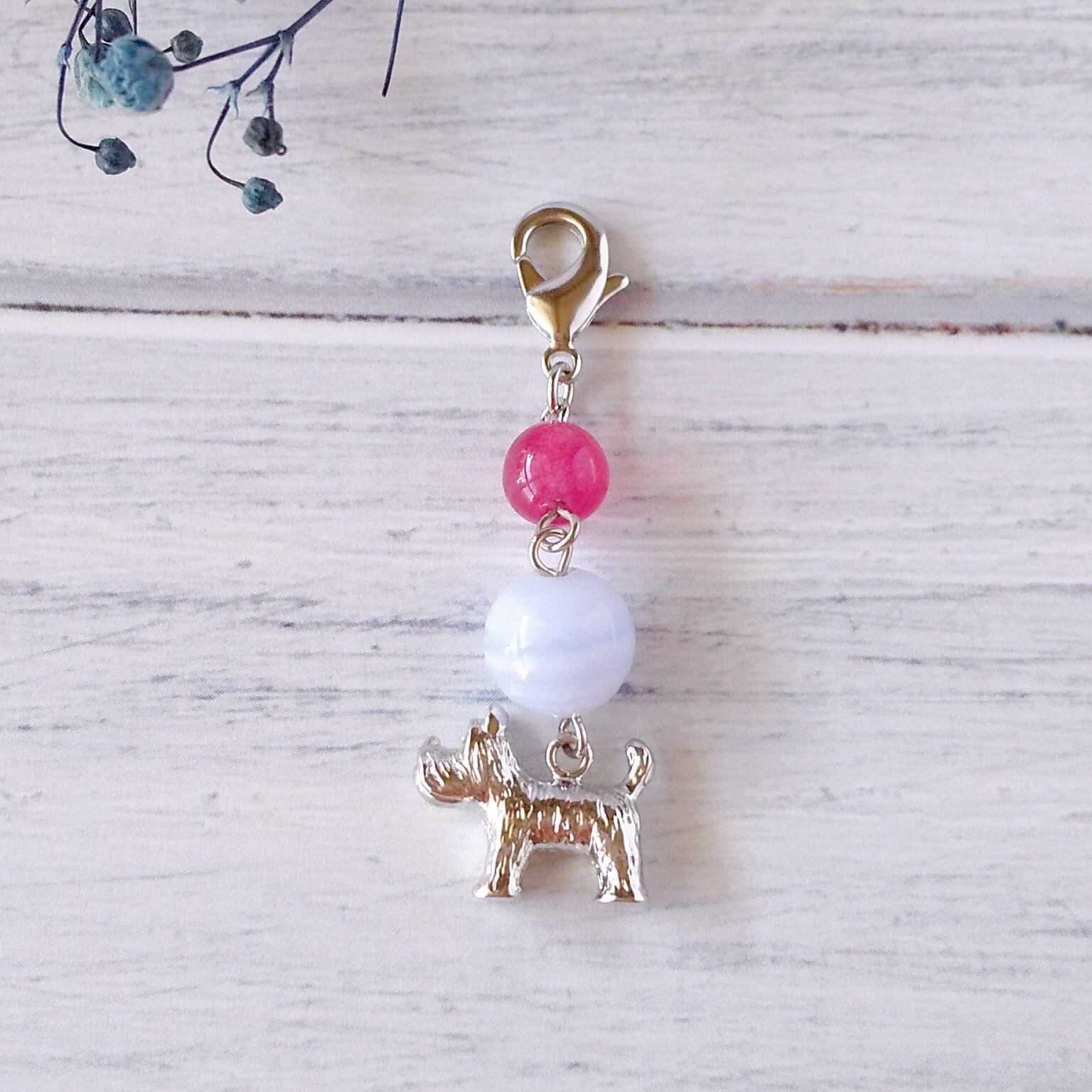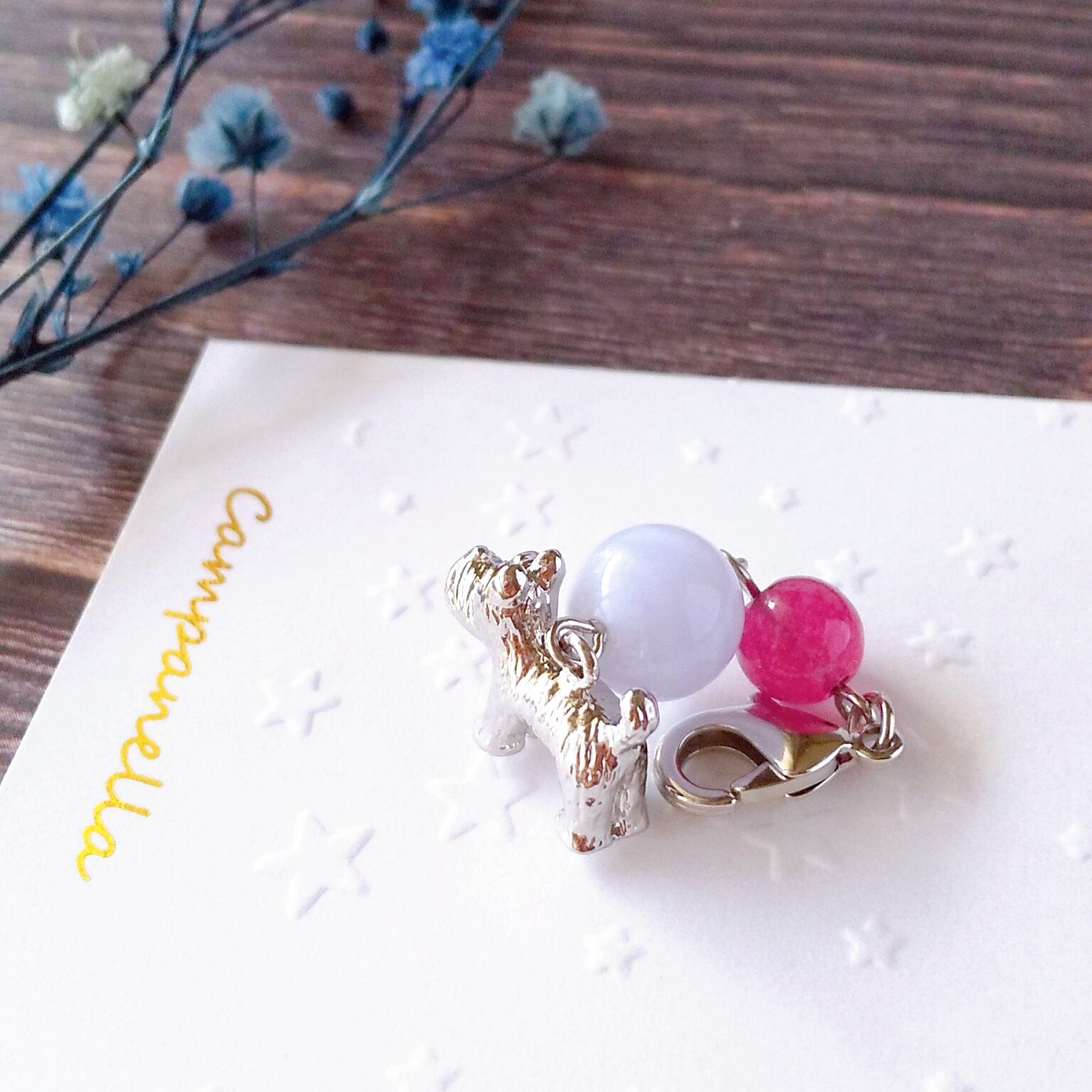 2way/シュナウザーと天然石のラッキーチャーム/マスクチャーム/ブルーレースアゲート×ジェード/ペット/クリスマス
